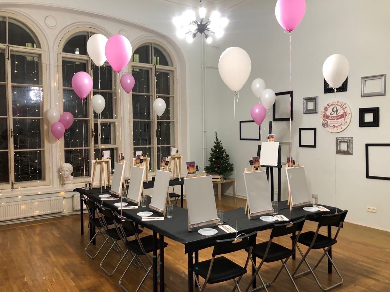 Выбирайте сюжет, размер холста, краски, длительность вечеринки и др.